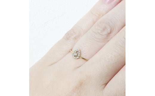 K18 しずく取り巻きダイヤモンドリング 0.12ct BQ-77