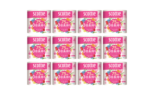 【定期便2回】【3ヶ月に1回お届け】【スコッティ】 フラワーパック 3倍長持ち 4ロール ダブル ×12パック 合計48ロール 香りつき 日用品 生活必需品 消耗品 紙 まとめ買い ストック 備蓄