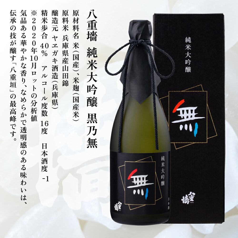 - 【ふるさと納税】八重垣 純米大吟醸 黒乃無 720ml ヤヱガキ酒造 加東市特A地区 東条産山田錦使用 化粧箱入[ ヤエガキ 小沢地区産 日本酒 酒 お酒 四合瓶 贈答品 フルーティー ] 純米大吟醸酒