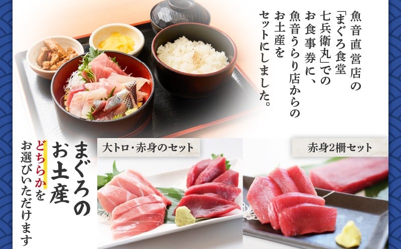 - 老舗魚屋直営店!まぐろ食堂七兵衛丸ペアお食事券+まぐろのお土産セット M006-003-02