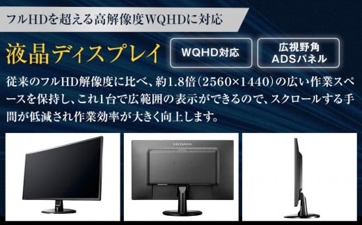 - I-O DATA 【LCD-MQ271XDB-A】広視野角ADSパネル採用&WQHD対応27型ワイド液晶ディスプレイ ブラック