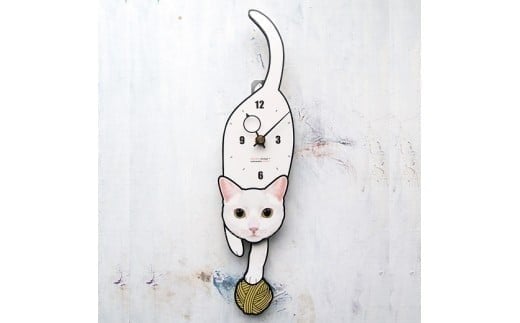 C-63W2 白猫(黄目)-猫の振り子時計毛糸玉02.PINK C-CC-063A