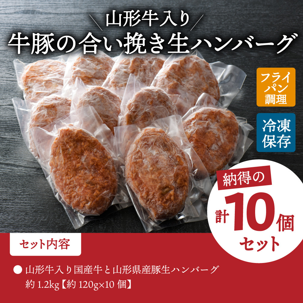 - 山形牛入り国産牛と山形県産豚生ハンバーグ約120g×10個