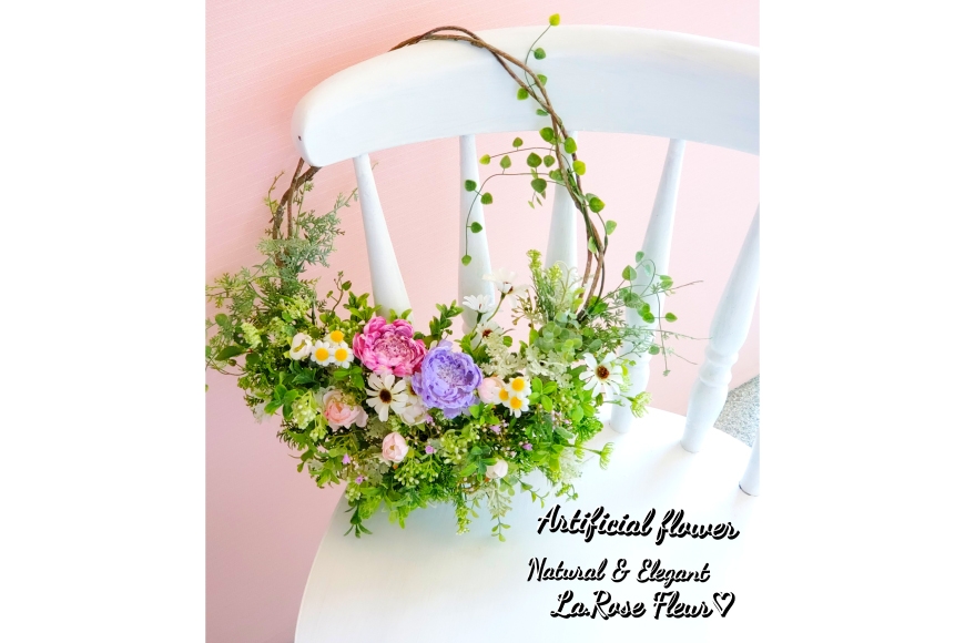 フラワーアレンジメント ハンギング バスケット 1個 [La.Rose Fleur 山形県 高畠町 tk06ayt140018] 花 はな 造花 フラワー アレンジメント インテリア 飾付 ハンドメイド