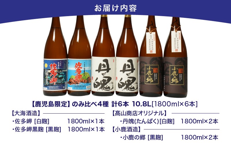 2162 鹿児島限定 焼酎 のみ比べ 4種 計6本 (1800ml×6本) KN043-010