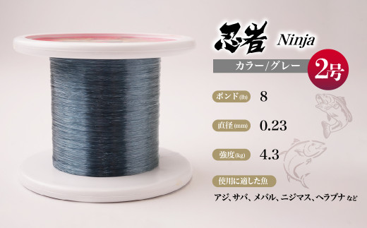 - 釣り糸 ナイロンライン『忍者』500m (2号) 8Lb グレー | 釣り 釣り具 糸 ナイロン 海釣り 川釣り ブラックバス バス バス釣り スピニング ベイト リール トラウト プロ 初心者 フッ素加工 レジャー アウトドア 人気 おすすめ 池上化工 埼玉県 所沢市
