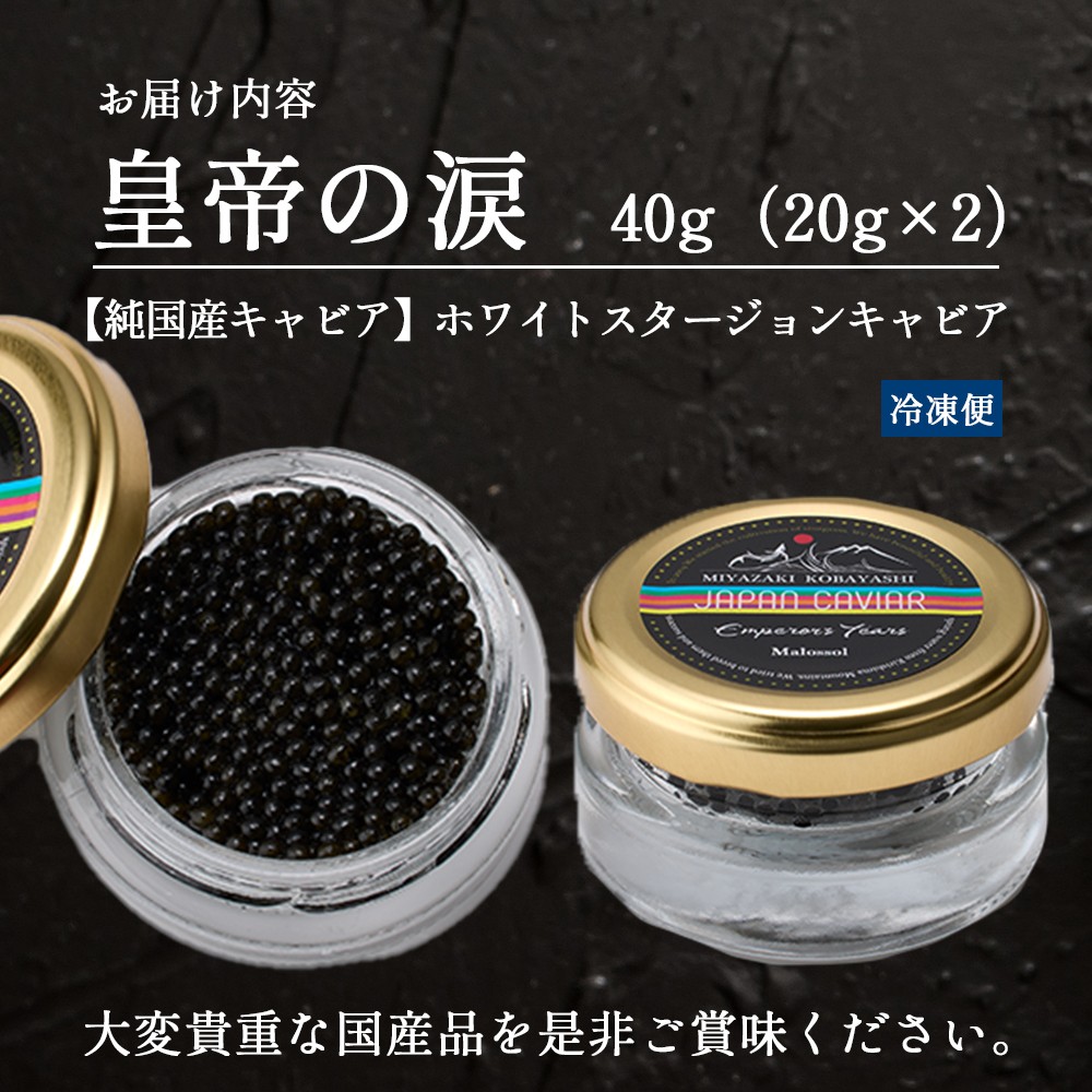 【純国産キャビア】ホワイトスタージョンキャビア 40g(20g×2) 皇帝の涙 国産 チョウザメ キャビア 国産キャビア 魚卵 宮崎県