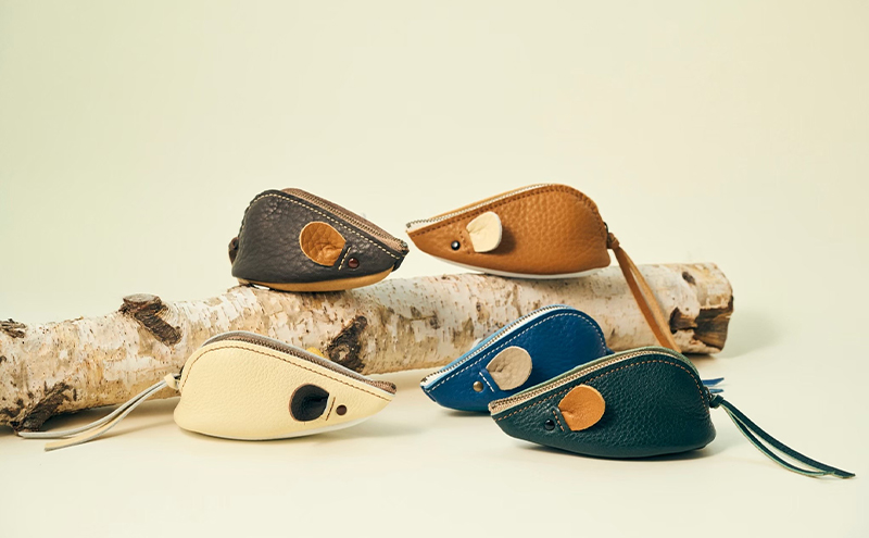 - ねずみのポーチ 北の動物たち[amina+]【 本革 革小物 レザー ハンドメイド シンプル 牛革 手作り ポーチ 小物入れ 小銭入れ 北海道 十勝 幕別 】