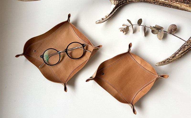 千鳥がモチーフの持ち運びできるtoriトレイ ブラウン(小)[amina+]【 本革 革小物 レザー ハンドメイド 小物入れ アクセサリートレイ シンプル エゾシカ革 手作り トレイ 置き皿 北海道 十勝 幕別 】