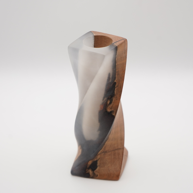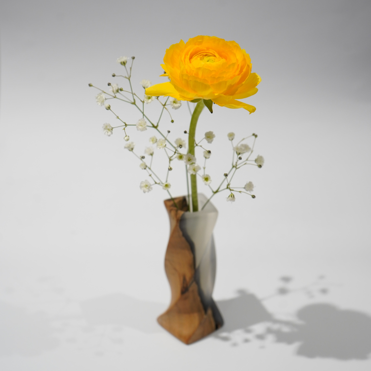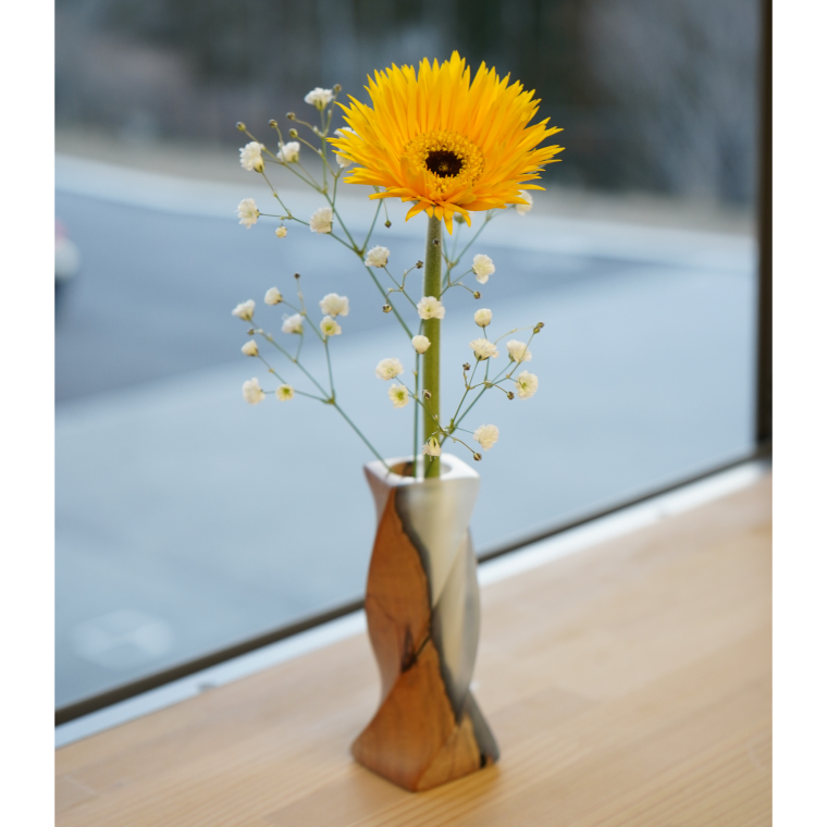 木製 一輪挿し(ガラス管付き)【白デザイン】 |茨城県産 大子町 花瓶 フラワーベース インテリア 一輪挿し ハンドメイド作品 レジン 白 木材(BH017)