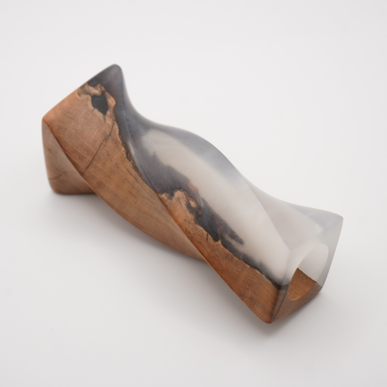 - 木製 一輪挿し(ガラス管付き)【白デザイン】 |茨城県産 大子町 花瓶 フラワーベース インテリア 一輪挿し ハンドメイド作品 レジン 白 木材(BH017)