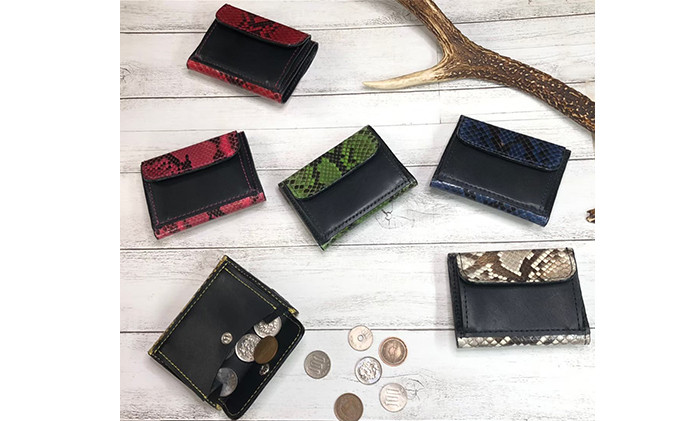 パイソン(ニシキヘビ)と牛革のミニ財布