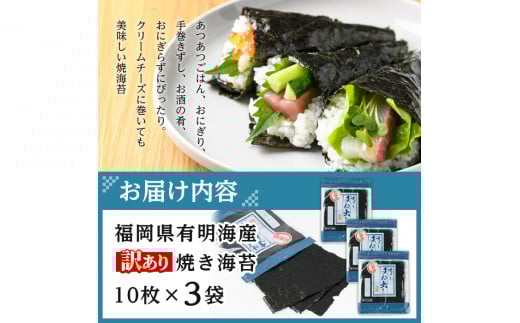- <ポスト投函でお届け・訳あり・キズ>海苔 福岡県産有明のり(全型30枚)のり 焼海苔 有明海 のり巻き 巻きずし おにぎり 常温 常温保存【ksg0496】【朝ごはん本舗】
