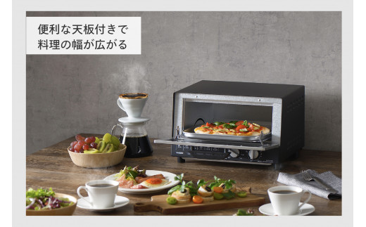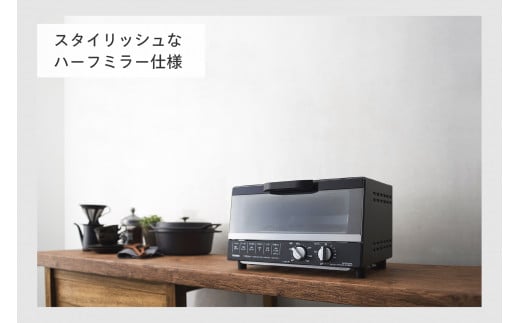 食パン4枚が一度に焼けるオーブントースターです。80~250℃の間で温度調節ができ、Mサイズのピザやローストチキンなどのさまざまな調理ができます。グラタンやクッキーなどを焼くときに便利な天板が付属しています。