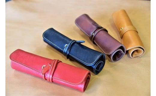 - ロール型ペンケース(赤) レザー 本革 ペンケース おしゃれ 日本製 ハンドメイド メンズ レディース コンパクト 赤 T02060-2