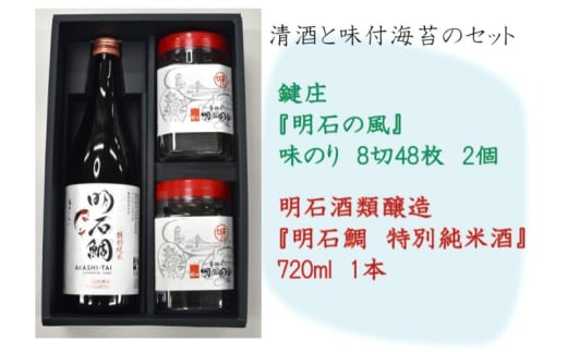 明石のり × 日本酒 セット 鍵庄『明石の風』 味付のり 8切48枚 2個・明石酒類醸造 『特別純米酒 明石鯛』 720ml 1本