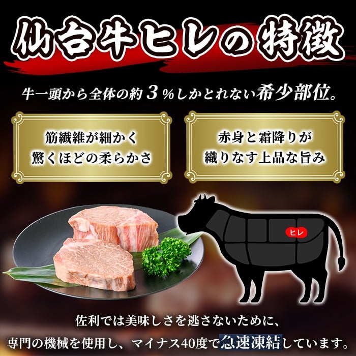 - 仙台牛 ヒレステーキカット 300g(約150g×2枚) 登米産 5番 牛肉 肉 お肉 冷凍【株式会社佐利】tm249