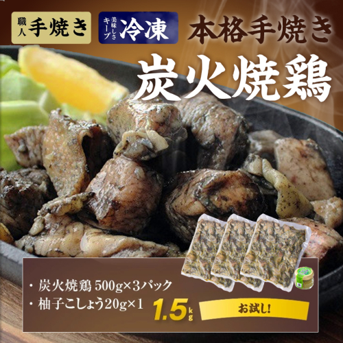 本格手焼き!炭火焼鶏1.5kg(500g×3P)ゆずこしょう付≪みやこんじょ特急便≫_AA-1413-Q