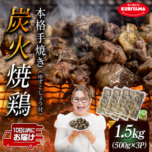 - 本格手焼き!炭火焼鶏1.5kg(500g×3P)ゆずこしょう付≪みやこんじょ特急便≫_AA-1413-Q