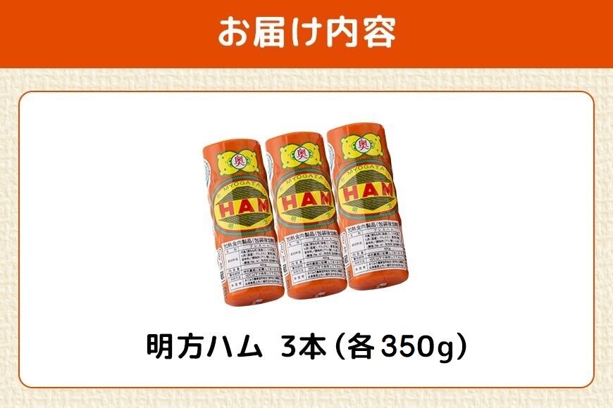 - 明方ハム 3本 特産品 加工品 農協 豚肉 肉 おつまみ お弁当 伝統製法 501