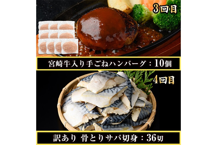 - <定期便・全6回(連続)>さかなのまち 門川 こだわり 定期便 (特大 あじ 開き・味付け すりみ 2種・宮崎牛 入り ハンバーグ・訳あり サバ 切身・中国産 うなぎ 蒲焼・訳あり からすみ)アジ さば おかず 惣菜 骨とり 宮崎県 門川町【AW-65】【丸正水産】