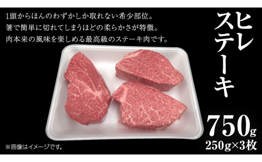 - 【 常陸牛 】 ヒレ ステーキ 250g × 3枚 (合計 750g )(茨城県共通返礼品)茨城県産 牛ヒレ肉 牛肉 ヒレ 牛ヒレ ステーキ 常陸牛 藤井商店 [CD066sa]