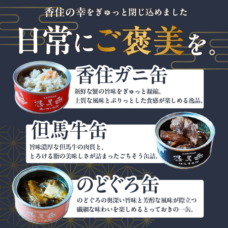 【ふるさと納税】海山の幸を使った豪華な缶詰3点セット【選べるセット数】香美缶 缶詰 3種 セット カニ缶 ずわい蟹 但馬牛 のどぐろ ズワイガニ 蟹 カニ 加工食品 魚貝類 フレーク 紅ズワイガニ ほぐし身 味付缶 保存食 常備食 非常食 備蓄 キャンプ キャンプ飯 送料無料