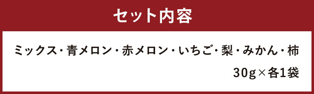- 【ふるさと納税】七種のドライフルーツセット 30g×7袋 【メロンドーム】 ミックス 青メロン 赤メロン いちご 梨 みかん 柿 ドライフルーツ フルーツ 食べ比べ セット 7種類 梨 ぶどう メロン みかん いちご 送料無料《90日以内に出荷予定(土日祝除く)》