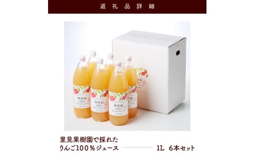 里見果樹園で採れたりんご100%ジュース 1L 6本セット 0079-2531