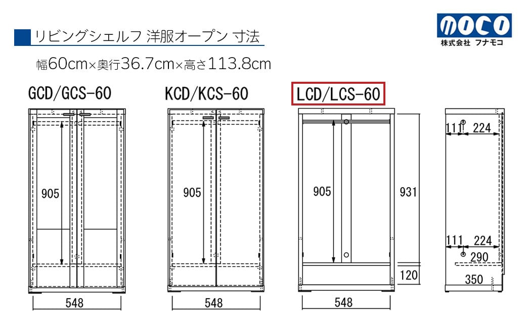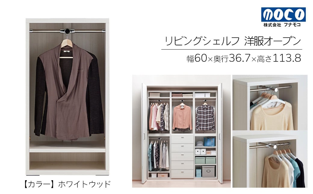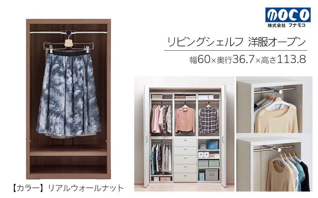 リビングシェルフ 洋服オープン LCD-60/ LCS-60(W600 D367 H1138mm)棚 収納 完成品 木目 衣類 ハンガー 服 クローゼット