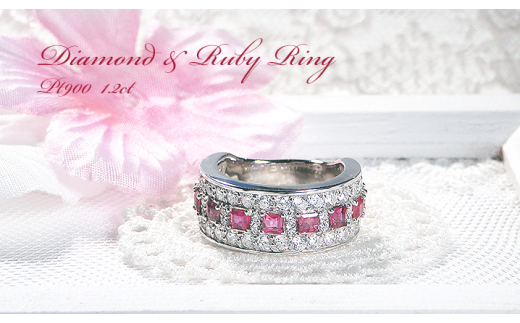 指輪 プラチナ PT900 ダイヤモンド 1.2ct 幅広 ルビー スクエア 誕生石 レディースリング 大ぶり ゴージャス ジュエリー【f249-pt-ru】※13.5号 ALPAZ135-13_5