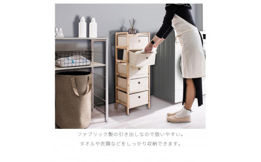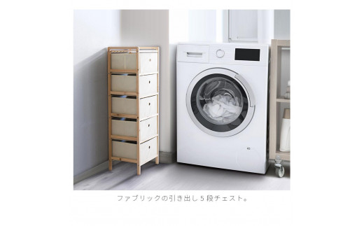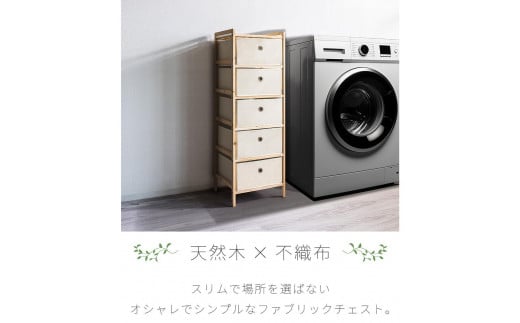 天然木 ファブリックチェスト5段 約幅32cm×奥行26cm×高さ92.5cm BYT1044469