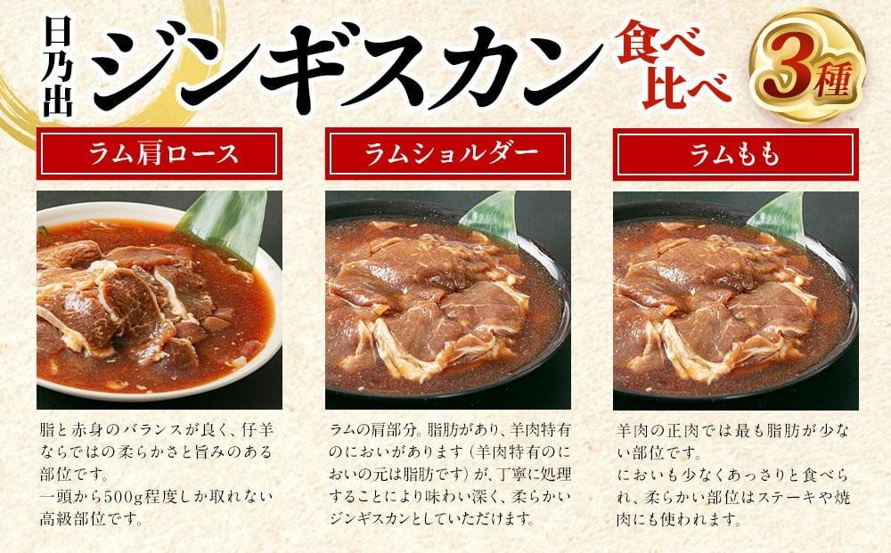 - 日乃出ジンギスカンラム食べ比べ3種【1.5kg】セット 【 羊肉 焼肉 肉 焼き肉 小分け 焼肉用 焼肉セット ラム ロース 肩ロース モモ お肉 やきにく ラム肉 高評価 大容量 ランキング おすすめ 大人気 詰合せ 詰め合わせ タレ 味付け 小分け 個包装 人気 食べくらべ 旭川市 BBQ バーベキュー 簡単調理 冷凍 北海道 キャンプ アウトドア クール便 】