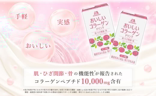 - 森永製菓 おいしいコラーゲンドリンク ピーチ 125ml 24本 セット 機能性表示食品 コラーゲン コラーゲンドリンク 森永製菓 おいしいコラーゲンドリンク ピーチ味 125ml 24本 コラーゲン コラーゲンドリンク コラーゲンペプチド 10,000mg 機能性表示食品 飲料 山梨県 北杜市