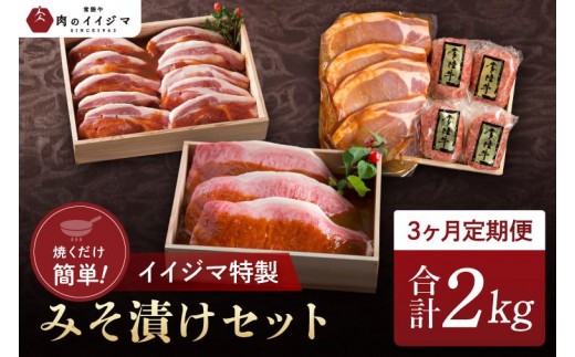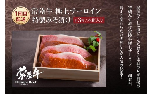 - 【定期便/全3回】 母の日 食べ物 肉 常陸牛極上サーロイン 茨城豚ロース 常陸牛ハンバーグ イイジマ特製みそ漬けセット 合計2kg 木箱入り・焼き方レシピ付き 63000円 冷凍 焼くだけでレストランの味 水戸市 茨城県 (DU-71)