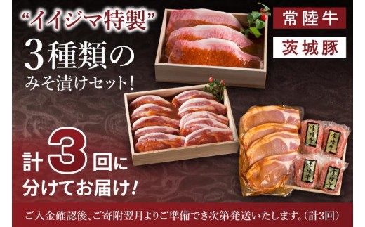 【定期便/全3回】 母の日 食べ物 肉 常陸牛極上サーロイン 茨城豚ロース 常陸牛ハンバーグ イイジマ特製みそ漬けセット 合計2kg 木箱入り・焼き方レシピ付き 63000円 冷凍 焼くだけでレストランの味 水戸市 茨城県 (DU-71)