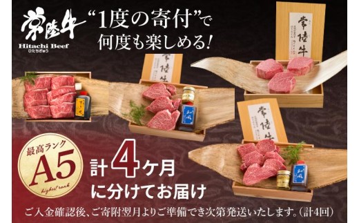 - 【 定期便 全4回 】肉 常陸牛 A5の希少部位三昧 木箱入り 270000円 フィレ赤身 シャトーブリアン フィレミニヨン みすじ 焼肉 ステーキ ヒレ肉 ヘレ 母の日 食べ物 冷凍 高級 茨城県 水戸市 高額(DU-99)