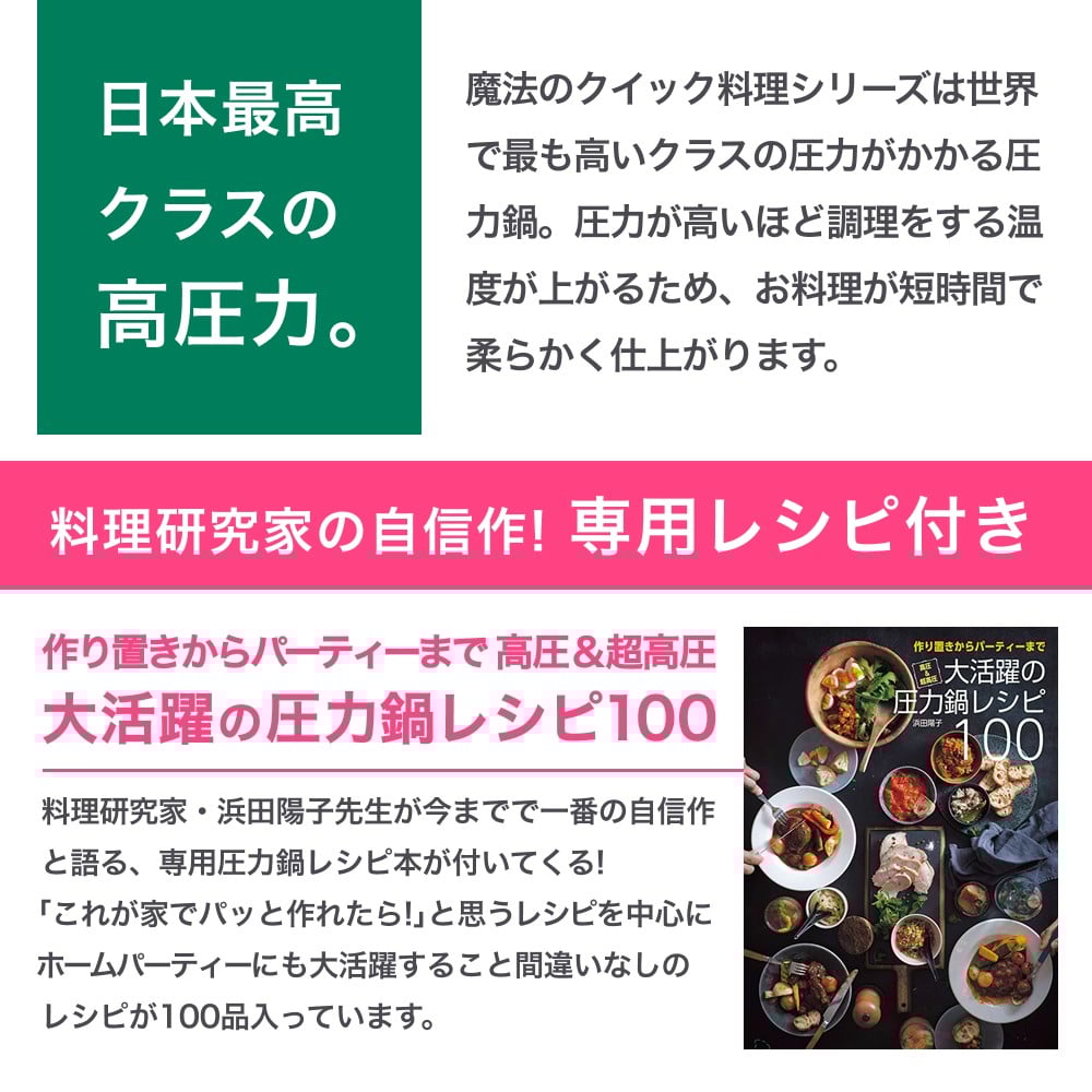 - 日本最高クラスの超高圧と高圧の2段切替 魔法のクイック料理 3L