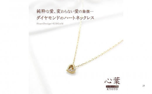 - 【心葉/京都kokoroba kyoto】K10 天然ダイヤモンド×ハートモチーフネックレス「イエローゴールド」
