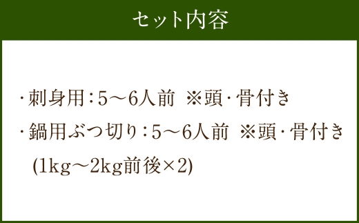 - 長崎の森で育てた『幻のクエ』 【セット】刺身用 5~6人前、鍋用 5~6人前(1kg~2kg前後×2)/ 計2kg~4kg前後 海鮮 魚介 高級魚 刺身 鍋 セット クエ 養殖 長崎県 長崎市