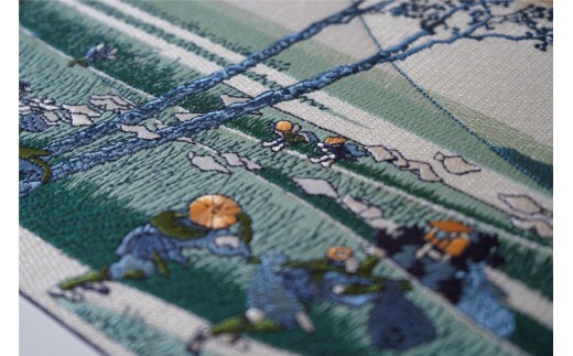 - 富士の刺繍絵6 葛飾北斎の駿州江尻 インテリア 絵画 ギフト 刺繍 富士山 アート 絵のギフト 富士の刺繍 富士山の絵 山梨 富士吉田
