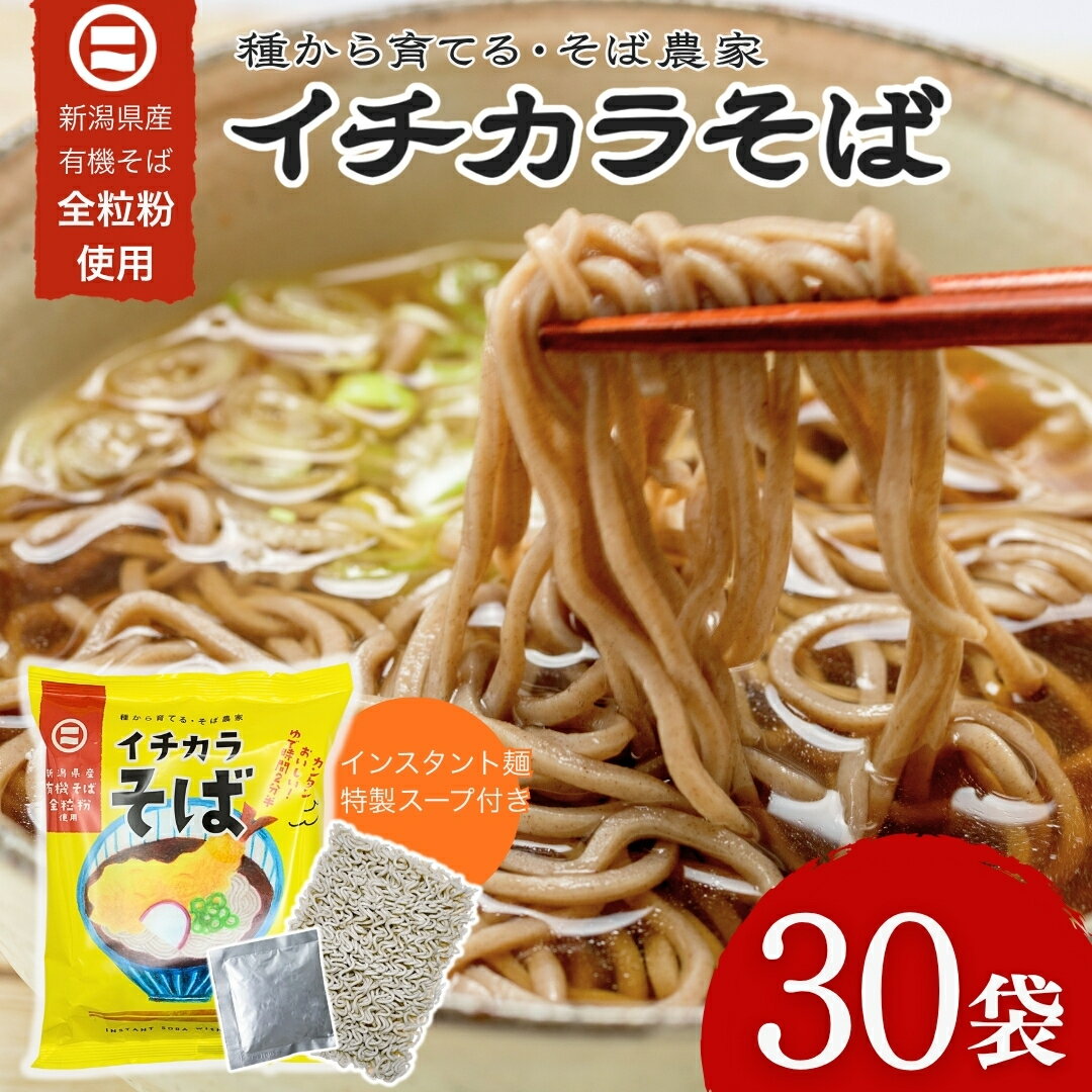 【ふるさと納税】有機そば全粒粉使用 有機栽培のインスタント蕎麦「イチカラそば」30食入 イチカラ畑 【0021-0007-01】