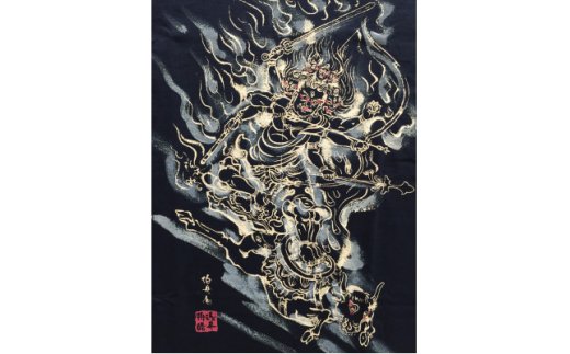 - 手描きTシャツ 仏画 大威徳明王 黒 (半袖 XLサイズ)【1615033】