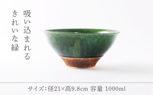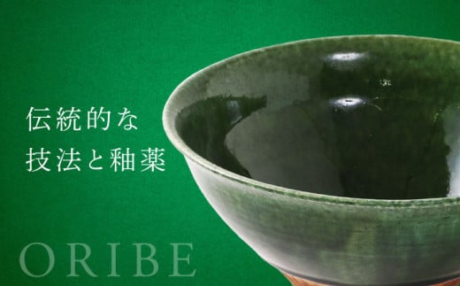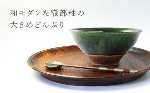 - 【美濃焼】 織部くし目 凜麺丼 【不動窯】食器 どんぶり 織部 [MAR040]