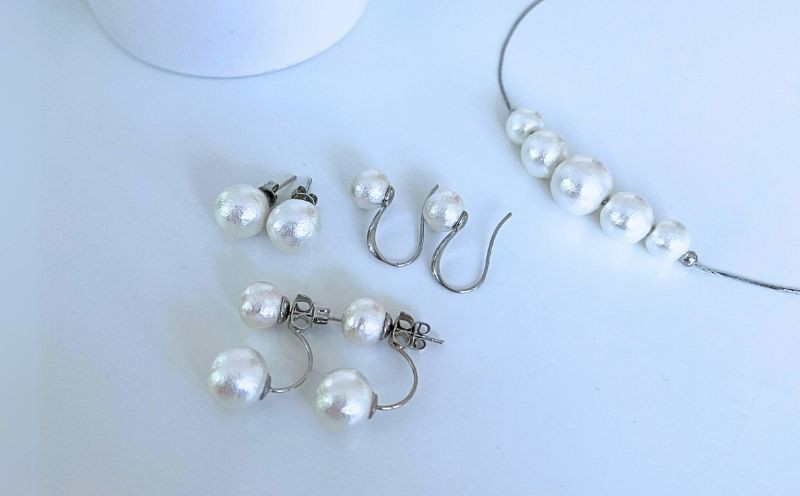 コットンパール「ホワイト」シルバーチェーンネックレスとピアス3点セット【~en~】|コットンパール ネックレス アクセサリー 入学式 卒業式 結婚式 シルバー