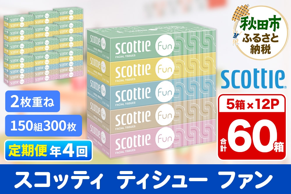 - 《3ヶ月ごとに4回お届け》定期便 ティッシュペーパー スコッティ ティシュー ファン 150組 5箱×12パック【レビューキャンペーン中】