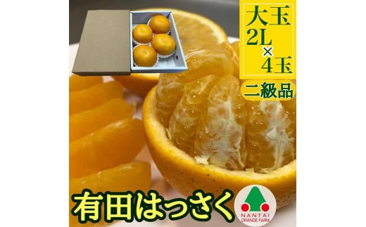- ちょっと 傷あり 小箱 手詰め 有田 はっさく 大玉 2L サイズ × 4玉入 南泰園