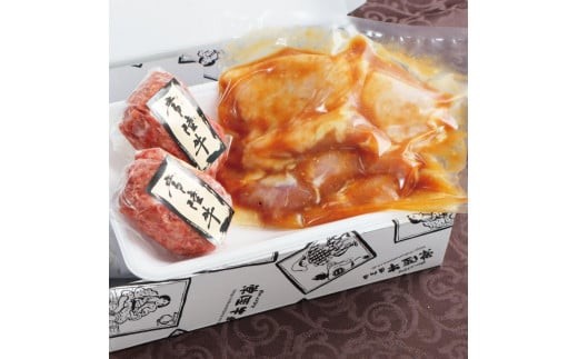\最短翌日〜5営業日以内発送/ 母の日 食べ物 肉 常陸牛100% 無添加 ハンバーグ 2個 国産若鶏もも味噌漬け2枚セット 400g 詰め合わせ ギフト 6000円 焼くだけでレストランの味 牛肉100% 茨城県 水戸市 【肉のイイジマ】(DU-88)