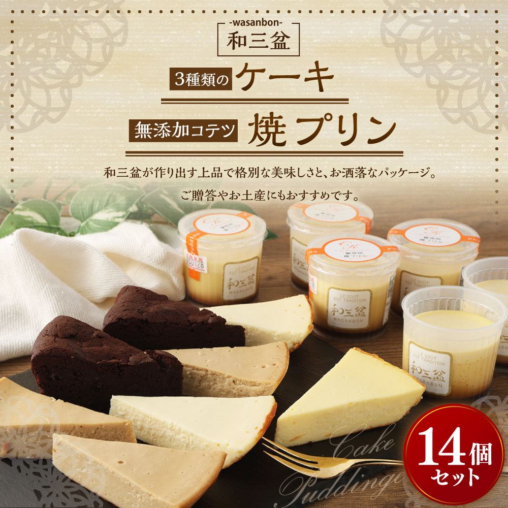 【ふるさと納税】3種類の和三盆ケーキ 和三盆 無添加 コテツ焼プリン 計4種 合計14個 セット ケーキ わさんぼん フロマージュ モカフロマージュ ガトーショコラ プリン デザート 食べ比べ 詰め合わせ 洋菓子 スイーツ 福岡県 苅田町 送料無料