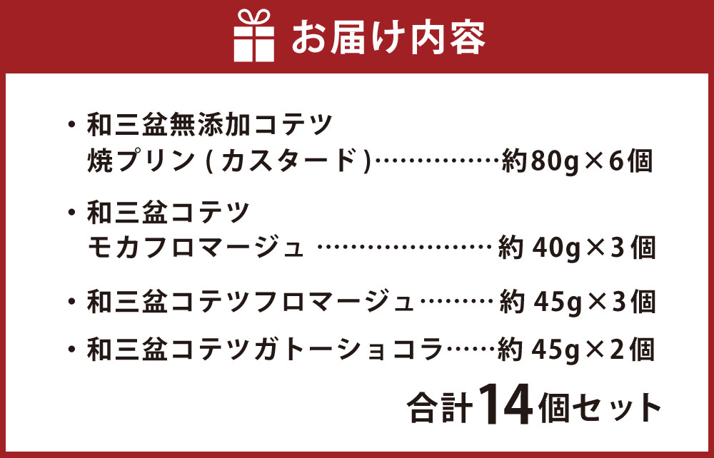 - 【ふるさと納税】3種類の和三盆ケーキ 和三盆 無添加 コテツ焼プリン 計4種 合計14個 セット ケーキ わさんぼん フロマージュ モカフロマージュ ガトーショコラ プリン デザート 食べ比べ 詰め合わせ 洋菓子 スイーツ 福岡県 苅田町 送料無料